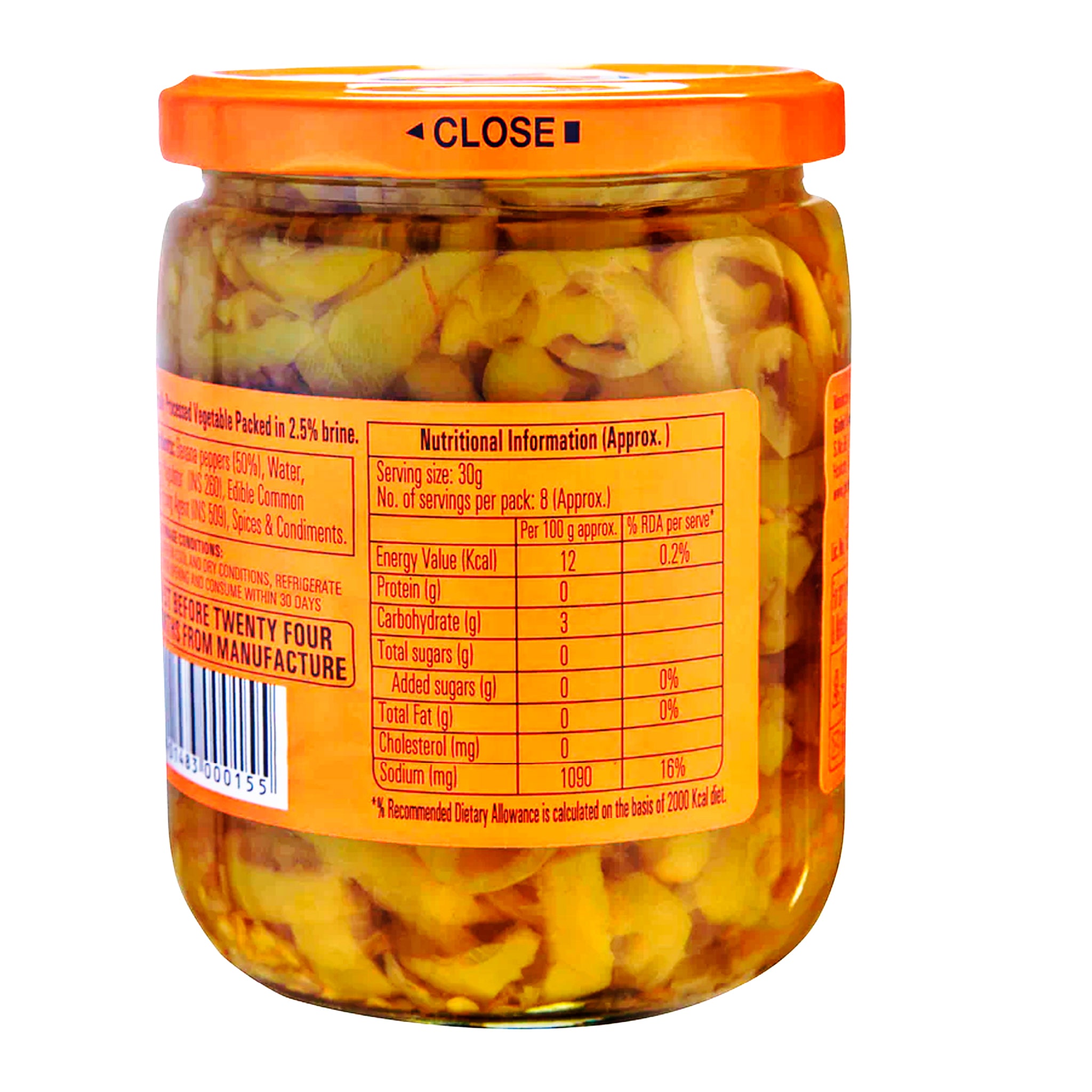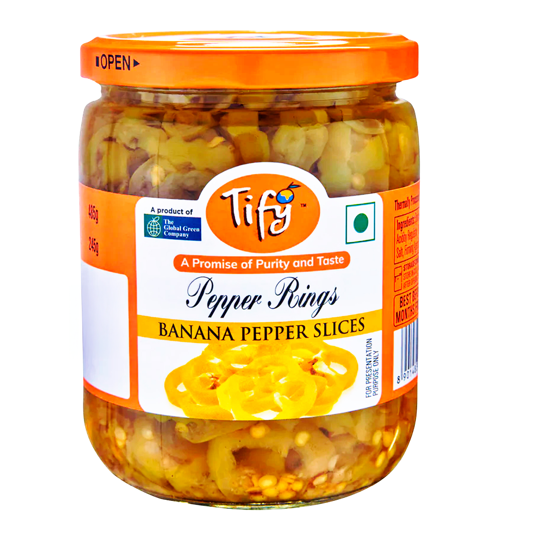 Crafted from high-quality, handpicked banana peppers that are precisely sliced and preserved in a 2.5% brine to maintain freshness and flavor. These bright, tangy rings add a mild kick to pizzas, salads, burgers, sandwiches, and appetizer platters, offering crisp texture and vibrant color to any dish. Made with 55% banana peppers and free from added sugars or cholesterol, they are seasoned with select spices and condiments for an authentic, well-balanced taste. Convenient and ready to use, bring versatility and lively flavor to everyday meals.