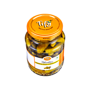 Introducing our exquisite French Style Cornichons, crafted with care to bring you the authentic flavors of France! Made with tender gherkins and a blend of spices and seasonings, each bite offers a delightful burst of tangy goodness.