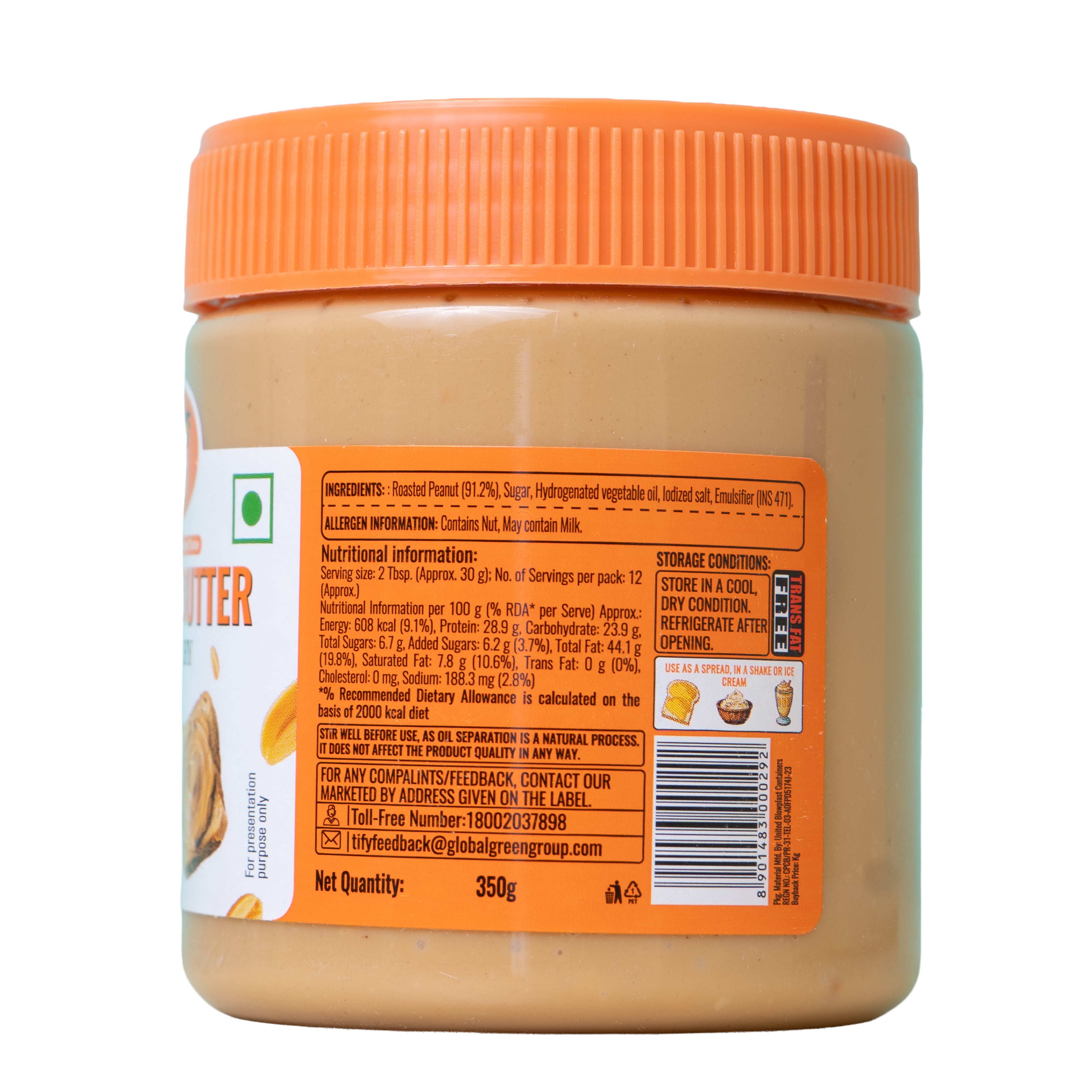 Made from premium roasted peanuts, delivering a deep nutty taste combined with satisfying crunchy peanut pieces in every spoonful. Free from added colors and gluten free. It’s a delicious, protein-packed option for spreading on toast, mixing into oatmeal, or preparing energizing snacks. With its wholesome flavor and enjoyable crunch. Perfect for a nutritious start to the day or a tasty snack anytime.