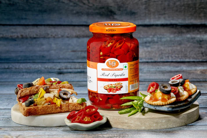 Crafted from high-quality fresh red paprika, skilfully sliced and preserved in a bold 7.5% brine to maintain their crispness and full flavor. With 54% red paprika, these vibrant, natural slices add a lively mix of color, mild heat, and subtle sweetness to salads, pizzas, wraps, sandwiches, and appetizer platters. Free from added sugars and cholesterol. Offers a wholesome, authentic taste suitable for both home cooking and professional kitchens. Enhance any dish with striking visual appeal and a flavourful kick, making them a versatile and essential ingredient for the culinary ideas.